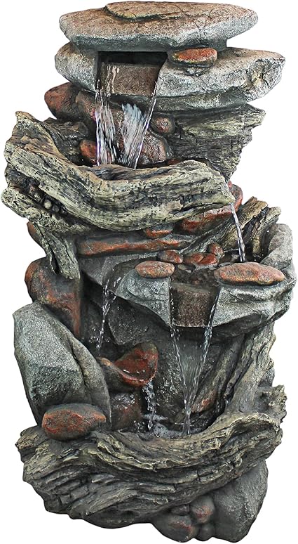 This item design toscano cathedral rocks cascading fountain sunnydaze stacked shale rock waterfall fountain with led lights outdoor rock water fountain for patio backyard garden 38 inch tall peaktop 201601pt floor stacked stone 4 tiered bowls waterfall water fountain for outdoor patio garden backyard decking with led lights and pump 33.